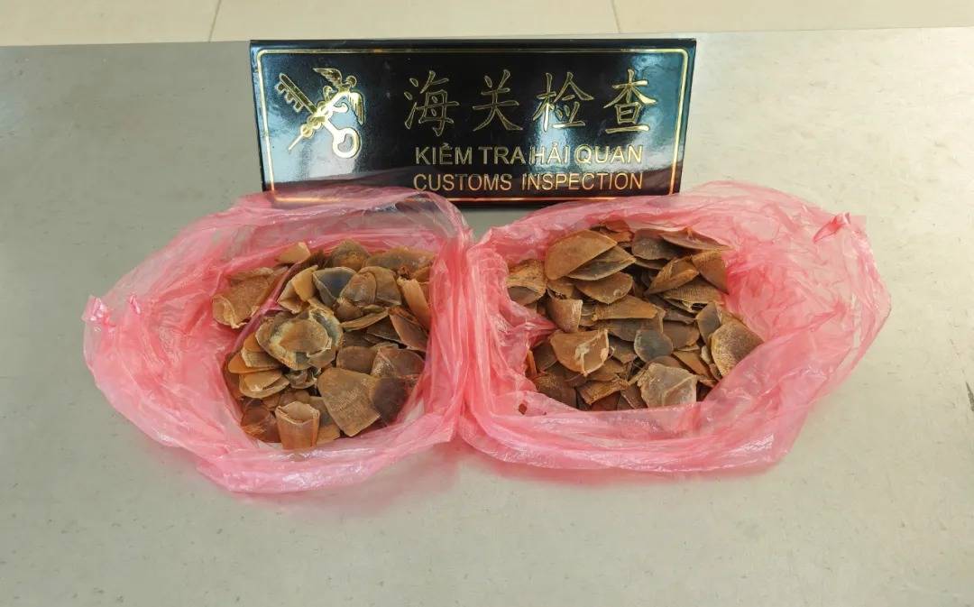 近日,昆明海关所属天保海关查获穿山甲鳞片265.6克。